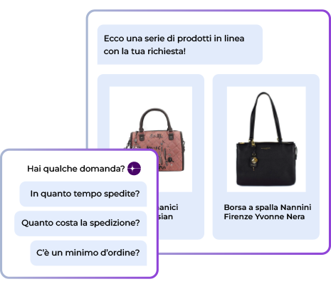 Raccomandazioni pertinenti, cross-sell al momento giusto e aggiungi al carrello in conversazione.