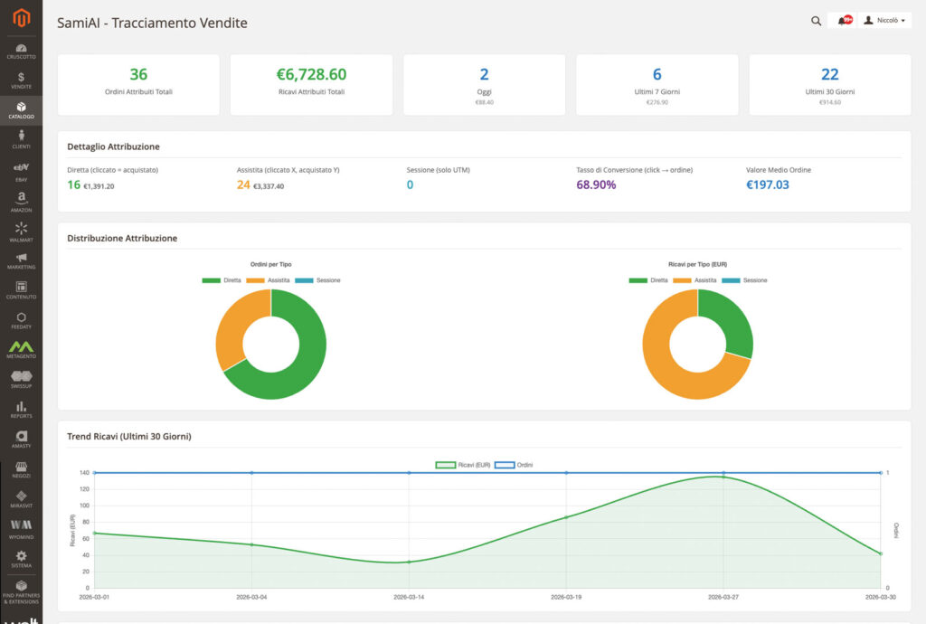 Una dashboard di analytics è in sviluppo: insight su conversazioni, prodotti consigliati e impatto sulle vendite.